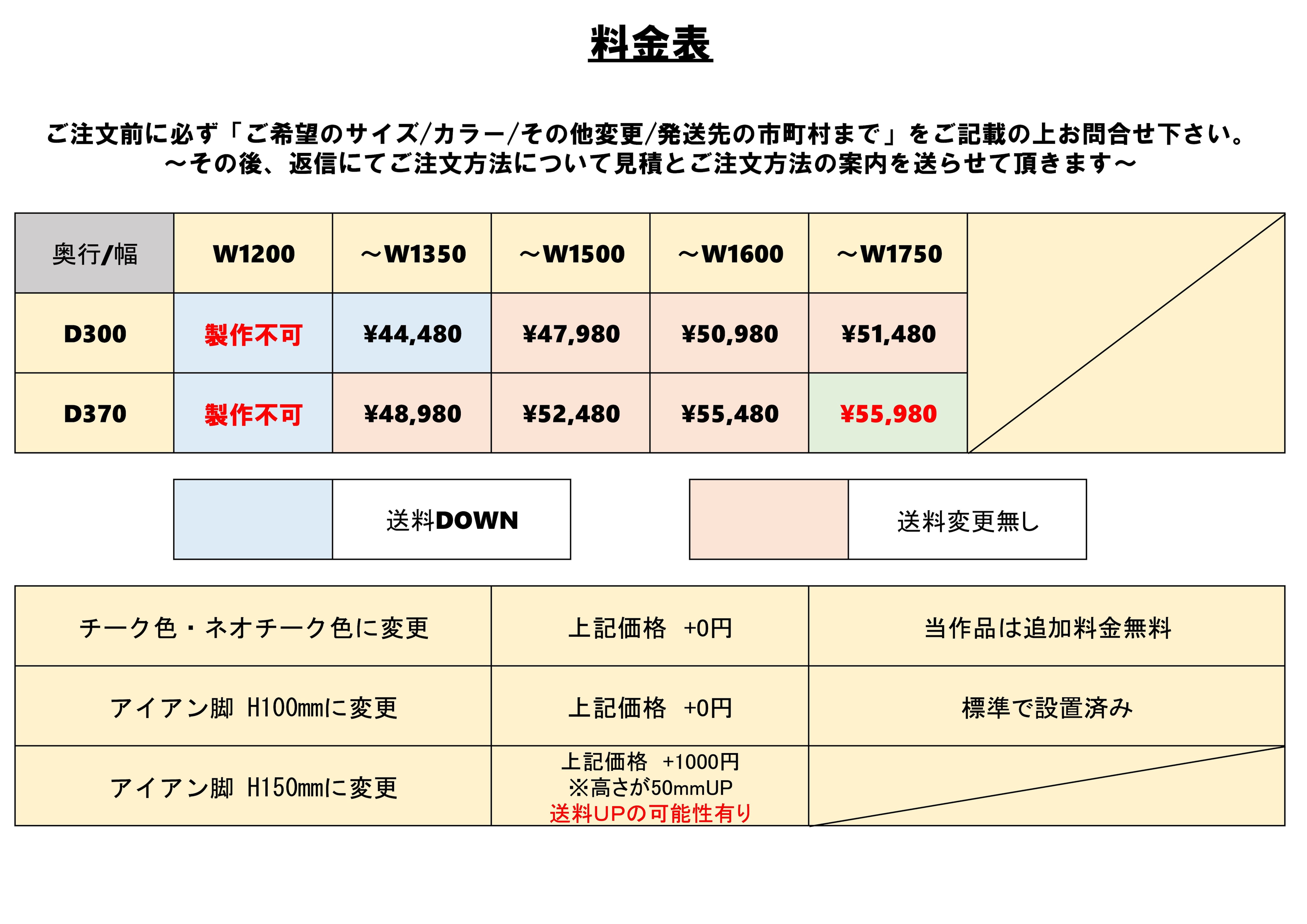 ・サイズによってはたわみ防止のため中央に脚が1本追加となります