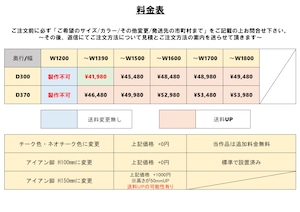 ・サイズによってはたわみ防止のため中央に脚が1本追加となります