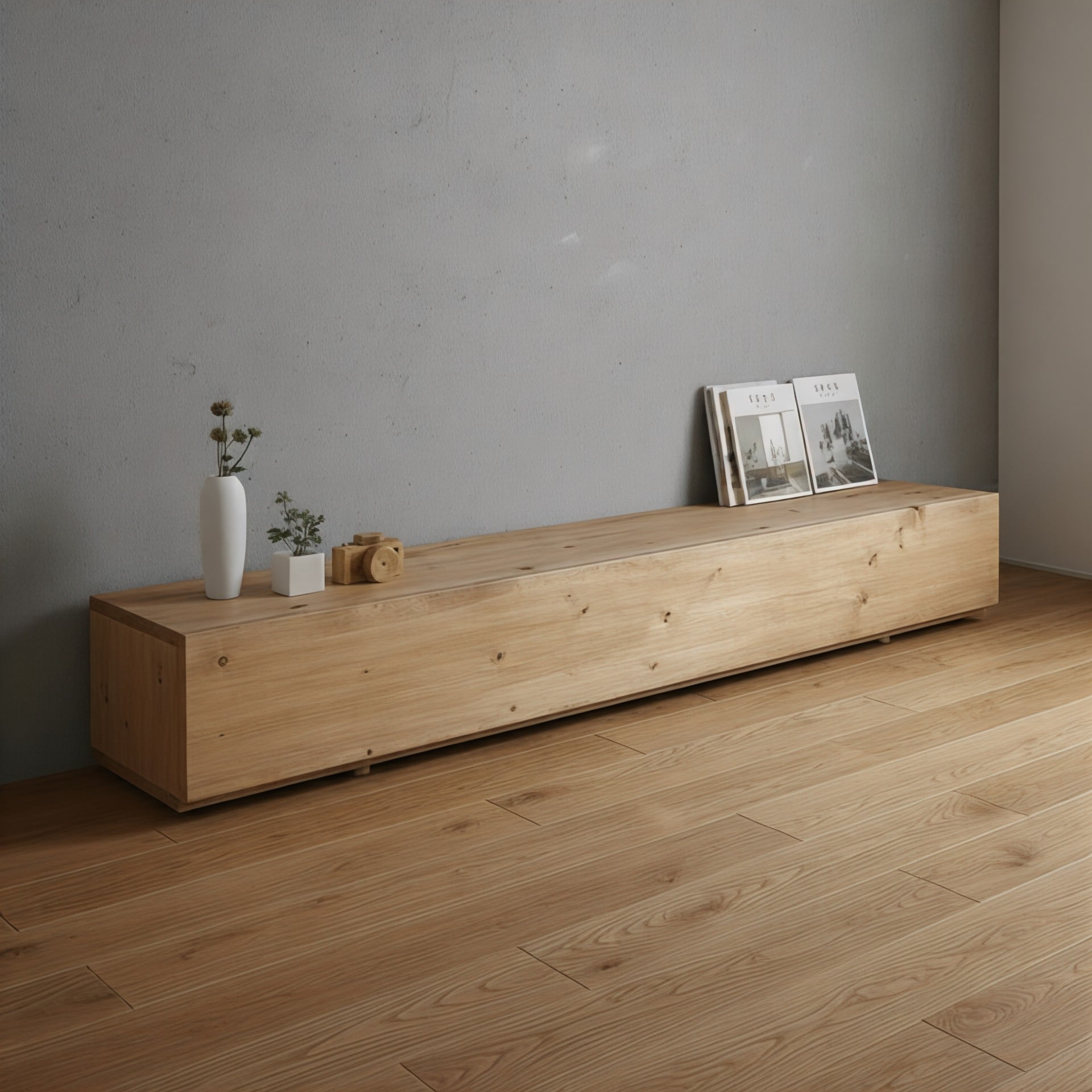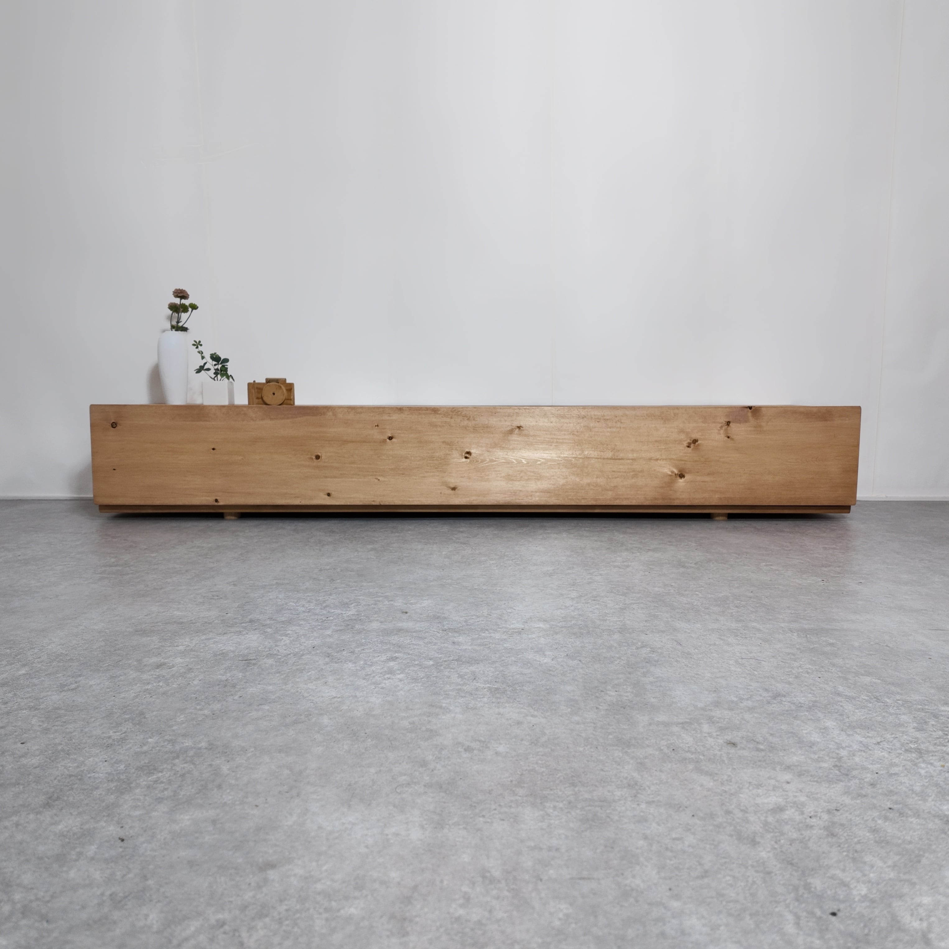 厳選されたメルクシパイン材と天然木の扉が、柔らかな木目の美しさを際立たせます。 まるで大木をそのまま横に見たような重厚感のある佇まいが魅力です。