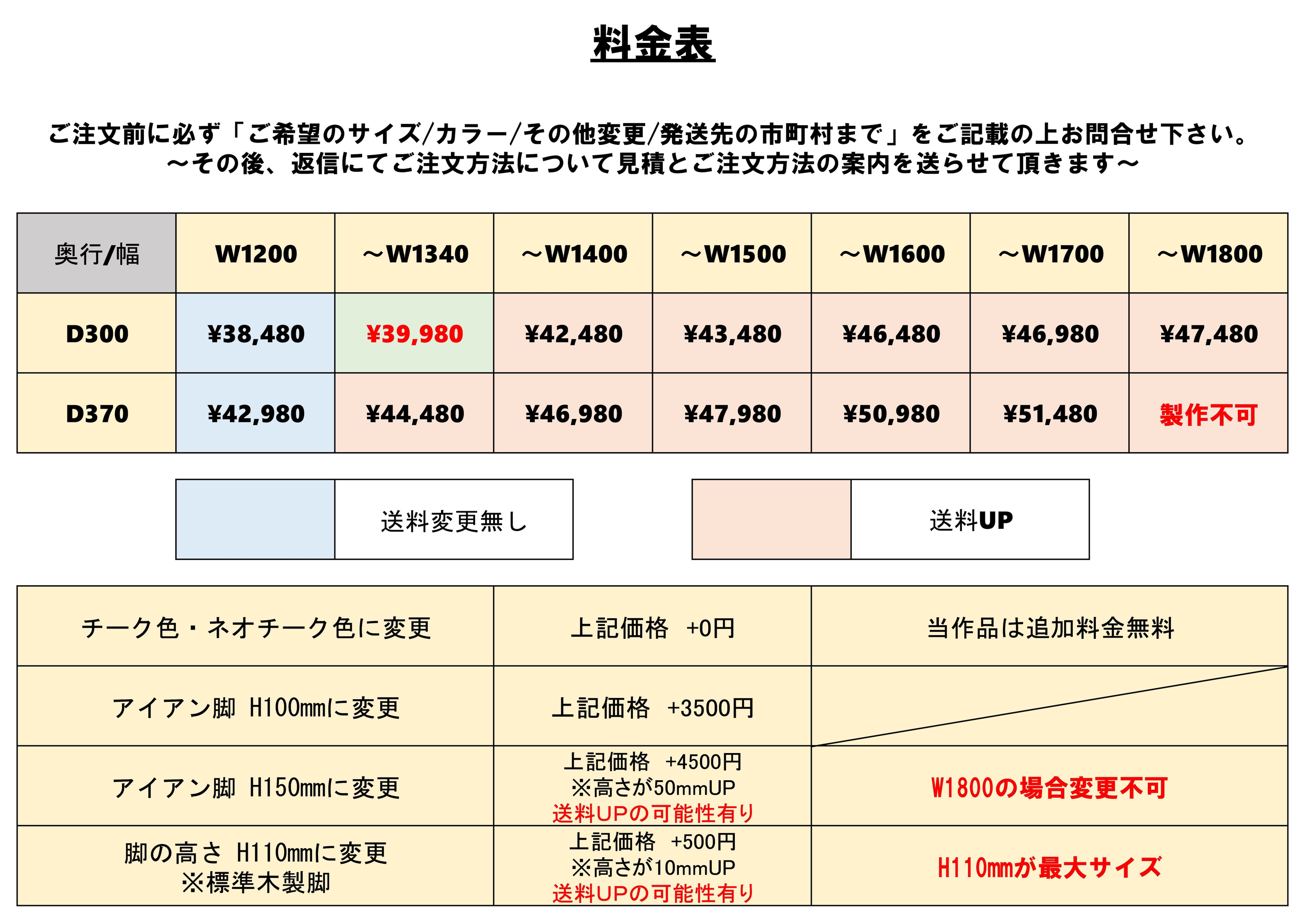 ◎奥行き:300mm(天板280mm)、320mm(天板300mm)、370mm(天板345mm)