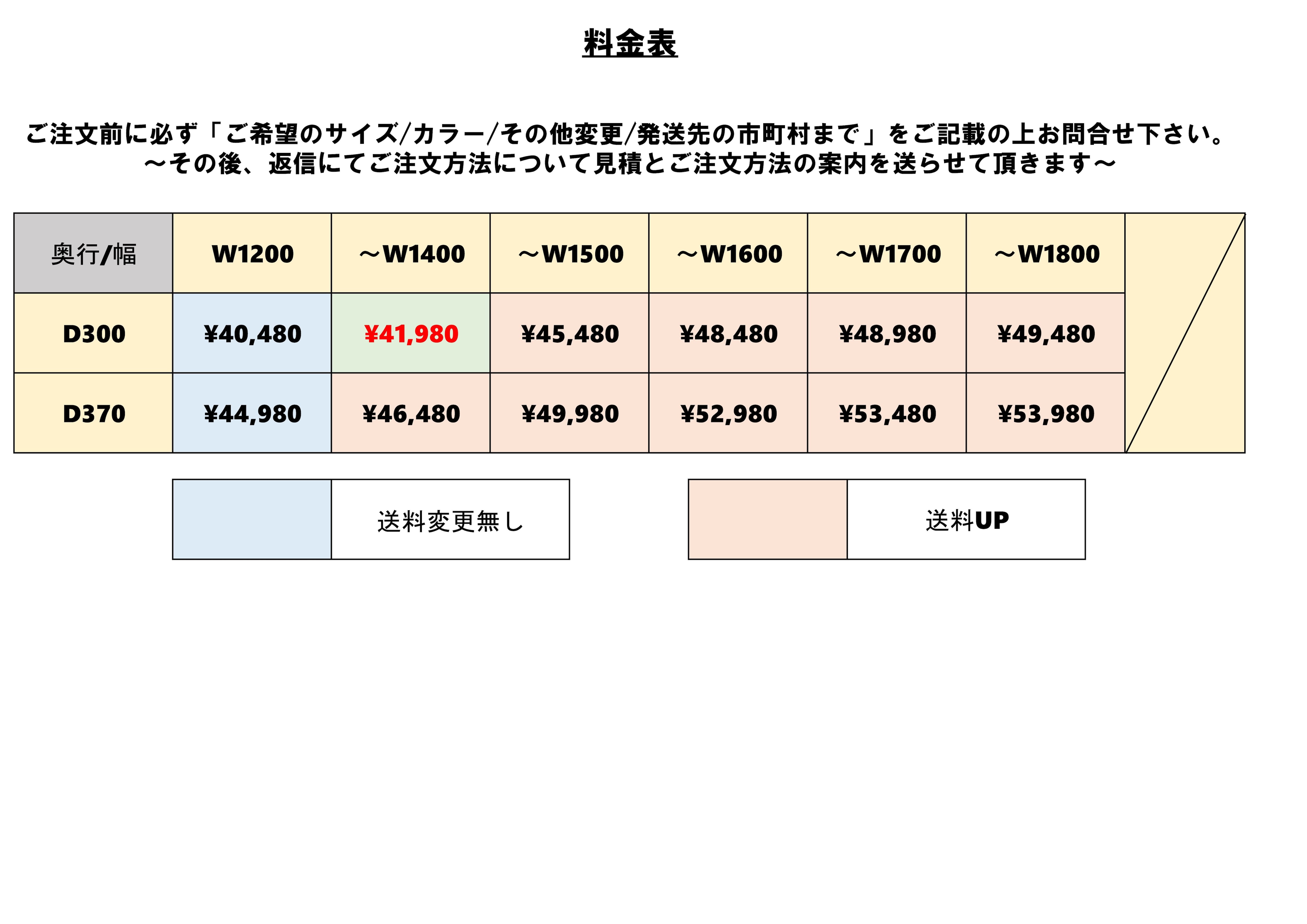 ・サイズによってはたわみ防止のため中央に脚が1本追加となります