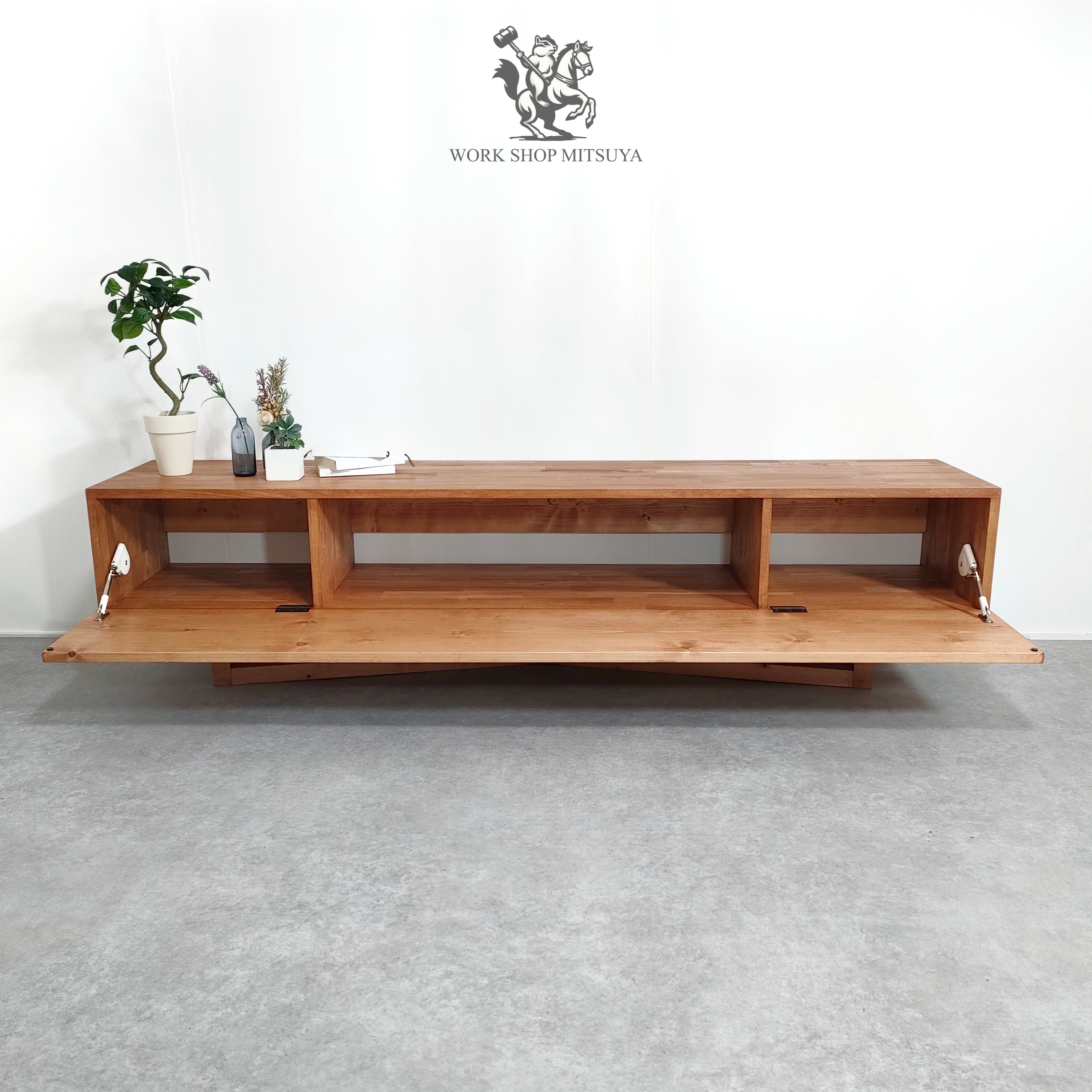 天然木の美しい木目が際立つ極上のテレビボード。
